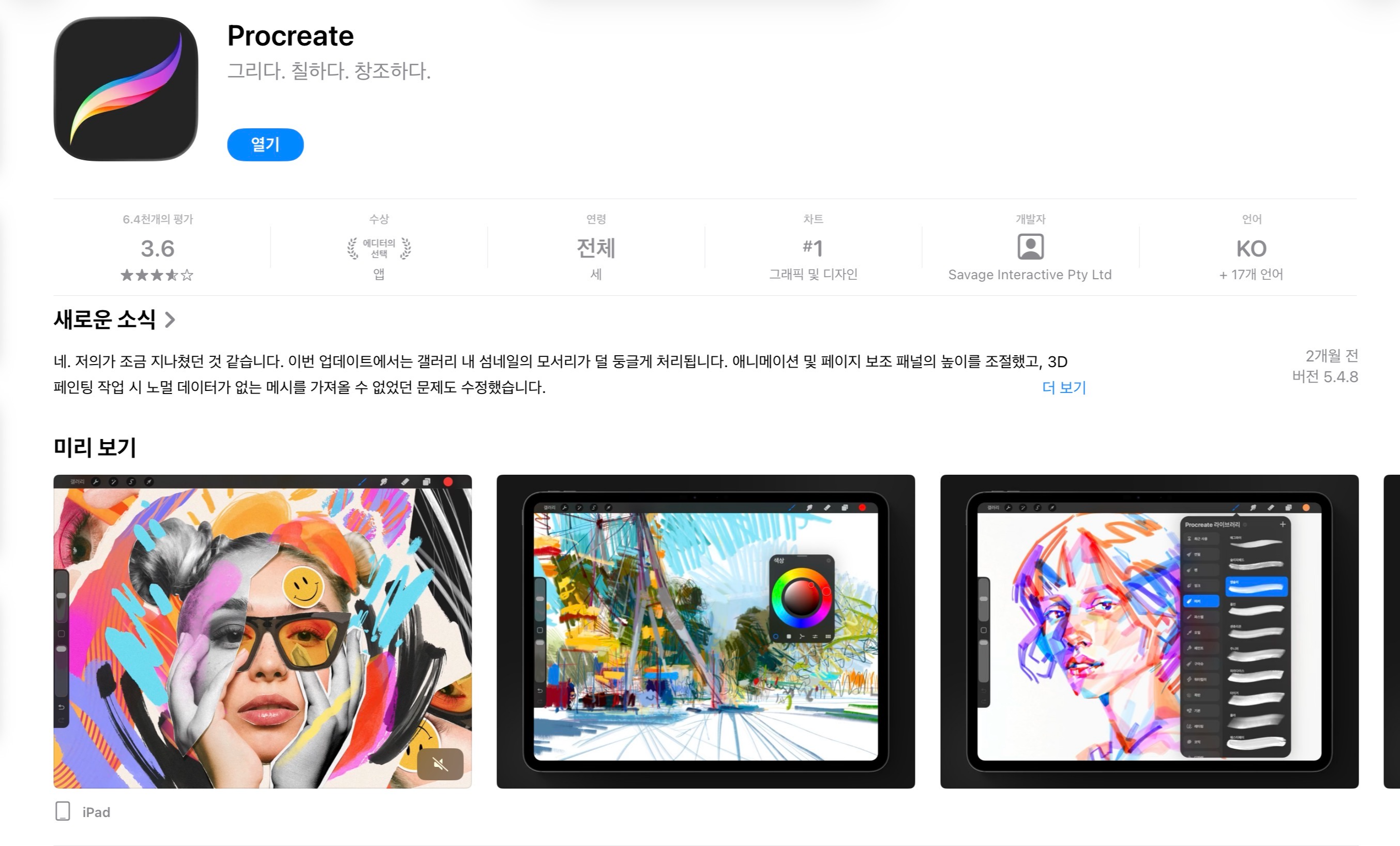 아이패드 드로잉에서 가장 많이 사용하는 앱입니다.